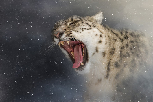 - This is a stunning and surprising picture right into the mouth of the very rare snow leopard. I am puzzled as to how you managed this, the proximity, the snow, the dark, the flash, the misty atmosphere and of course that yawn, all coming together beautifully. The result is striking. I suppose this is from a remote camera trap (?) in which case your research and camera management have proven to be priceless. You are this round’s worthy winner congratulations!