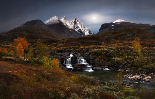 - Thank you for this mark of excellence. It was a treat to experience Skogafoss under such magical lighting conditions. I tried to bring this element out in the image. First I had to wait for the setting sun to break through the clouds. This beautifully backlit the mist from the waterfall, and brought out the semblance of a face in the rock feature to the left. This is a composite of three images, shot handheld, and manually blended in Lightroom. It was taken on a Canon EOS 6D with a Canon EF 17-40mm f/4 L lens. Thanks again, and congratulations to the winner.