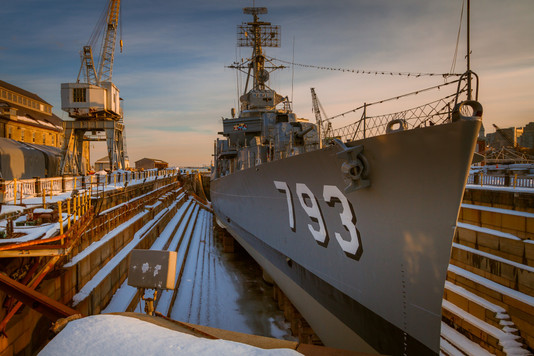 - First, thank you for recognizing this photo; it is truly an honor! The USS CASSIN YOUNG (DD-793) is a US Navy Fletcher-class destroyer whose namesake was awarded the Medal of Honor for heroism at the Japanese attack on Pearl Harbor and was subsequently killed at the Battle of the Solomons in 1942. Commissioned in 1943 the ship served during World War II and the Korean War, and put in long-term storage in 1960. In 1974, the ship was permanently loaned to the National Park Service as a floating memorial berthed at Boston Navy Yard. This image was taken in January 2011, during a dry-dock availability. I titled this image "Ready for Sea", the motto of the US Navy Supply Corps, reflecting my own Navy heritage, and because the ship looks like she's ready to fight alongside her more modern counterparts. Captured by: Canon EOS 7D | EF-S 10-22mm f/3.5-4.5 USM aperture priority at 16 mm for 1/250th at f/4 and ISO 100. Post-processing: Adobe Lightroom