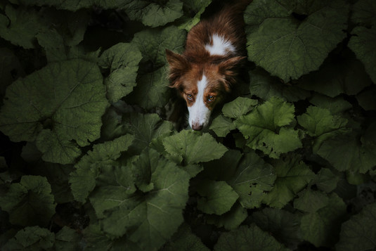 - This is such a stunning image and an instant fave. The rich tones and contrast between the red border collie and the dark green leaves, the deep shadows, and the light flooding down on this sweet dog with its upward gaze, make it a captivating and wholly memorable image. Brilliantly captured and managed in post. Congrats! ~ illona