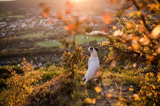 - This is a beautiful image. The camera angle, shot through some foreground branches, makes the viewer feel as though they are sneaking a peek at this beautiful older dog sitting on the bluff overlooking a stunning landscape. Nicely seen and captured. ~ illona