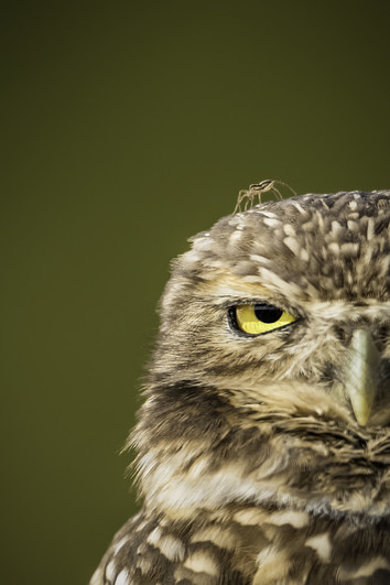 - This image stands out by being both humorous and engaging. An owl with a spider on its head is not something many of us will ever see, so there is interest value from the outset. A bird portrait with eye contact will also normally be more engaging to a viewer than one without. In this case, however, it's the owl's expression that really elevates the image, because it's pretty much exactly the expression most humans would have if we had to put up with having a spider on our heads, especially whilst having our photos taken. The clean composition with quirky framing further add to the visual impact.