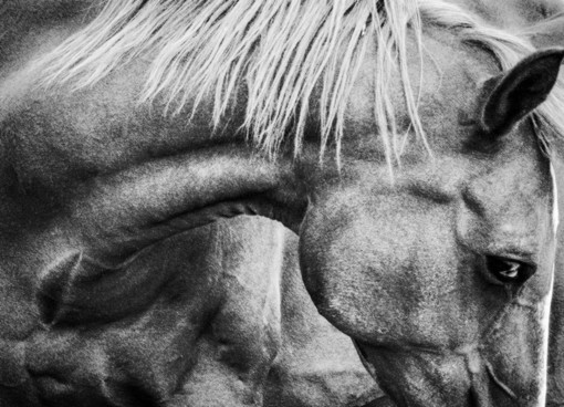 - This fabulous closeup provides the viewer with an intimate look at this horse. The choice to convert it to black and white allows for the lines to truly stand out ... the incredible curve of the neck, the round jawline, the ripple of muscle ... Beautifully captured and presented. ~ illona