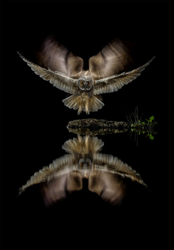 - Good use of the 'rear curtain' photography technique to show both movement and detail in a single frame. The reflection and black background add to the graphic effect.