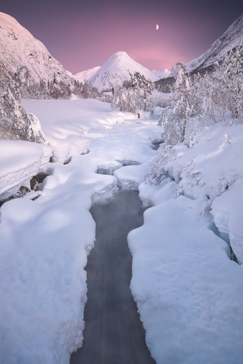 - This is beautiful and fresh and pastel. We feel the freeze and the isolation of this superbly composed winter snow scene in the mountains. Big well done!