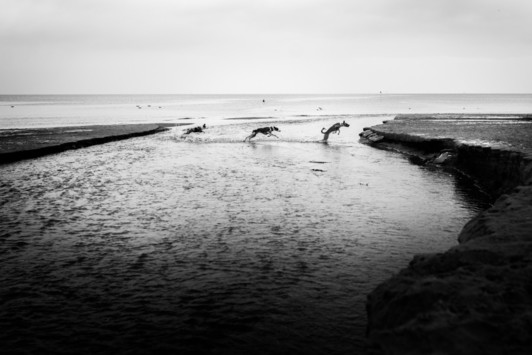 - What a fabulously epic image. The huge landscape for this dog to romp in draws the viewer in and one can almost hear the surf. A lower angle would likely make the viewer feel even more immediately in the landscape, but it is certainly a lovely image. ~ illona