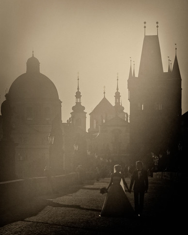 - This fairytale wedding image with lots of memory factor instilled by the faded, hazy look has an excellent composition. The converging lines of the buildings, fence, path edge, shadows, and row of street lights all direct the viewer’s eye toward the bride and groom very effectively, but also provide paths for the eye to circulate. Excellent!
