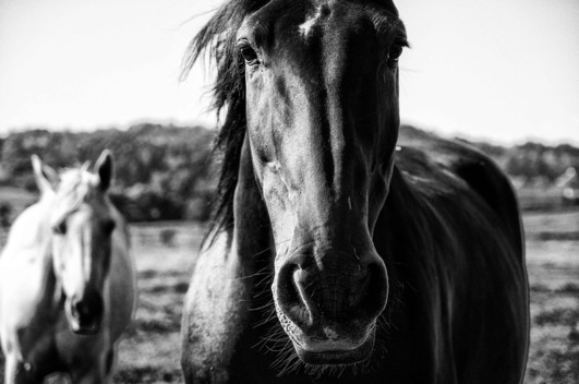 - This is a wonderfully intimate image. The close crop makes us feel as though we are manning the camera and this horse is moving in close. The sharp details on the lead horse are in perfect contrast to the distant horse in soft focus. The decision to convert this image to black and white allows the different elements to truly stand out in contrast. Nicely captured and managed in post. ~ illona