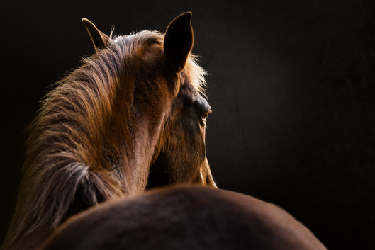 - What a strong yet intimate portrait of this horse. The low-key quality of it allows the viewer to take in the various details of the horse ... its thick coat, the mane, the eye and eye lashes, and the turned-back ears. Lovely capture and management in post. ~ illona
