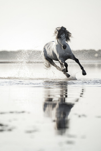- What a fabulous and stunning action capture -- the athleticism of the horse, the tossed mane, the sprayed water -- all coming together in a show of beauty and power. The limited palette of colors allows the horse to almost surge off the image, making it an unforgettable image. Well done! ~ illona