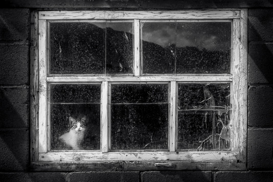 - This is such a fabulous, story-telling image. The gritty black-and-white conversion allows this little creature to standout from the dark interior of the shed or barn, and his direct gaze invites us in to wonder about his story. Great job. ~ illona