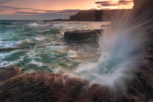 - I took this photograph in Ireland. More specifically in Rathmoylan Cove in the county of Waterford. I used a Canon 6D & Irix 16mm and a neutral density filter to get one second of exposure and another soft gradient filter for the sky. The photography was quite complicated and it took a long time to get to capture the wave hitting the cliffs. After about an hour of trying I got the effect wich I was looking for. I am happy with the result. Thanks a million.
