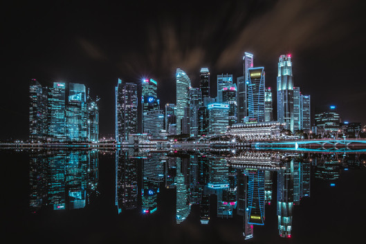 - Lovely cold blues make this an eye-catching reflection of Singapore. The long exposure adds some cloud glow to the chill, nice.