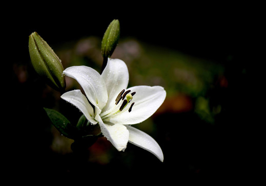 - A strong contrast in colour and the softened background works really well here. The light is beautiful and the little water drops on the lily flower give nice context.