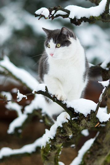 - This is a truly lovely image ... the focus is perfect, and the shallow depth of field surrounding this gorgeous cat is fabulous. There is great variety of texture, from the snow-covered mossy branches to the white snow, the cat's fur and eyes, and whiskers ... all work to deliver a wonderful image. Nicely captured and handled in post. ~ illona