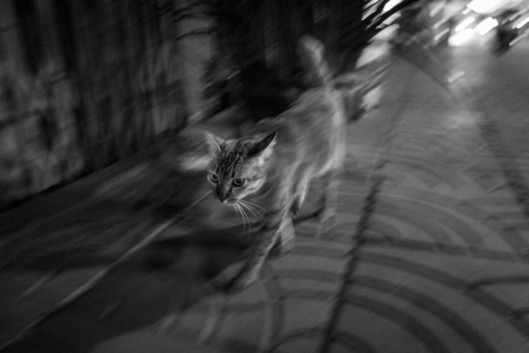 - The blur from the panning of this image is absolutely wonderful ... the motion-blur of the cat and its surroundings, along with the perfect focus on his face, make this image a great capture. Super image. Nicely done. ~ illona