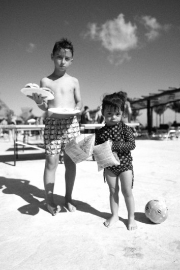 - Not everyone has to smile to look pretty! Getting ready for something, may it be a meal or a swim, these two kids try really hard not to give away too much. A lovely scene of a beautiful day in the sun.