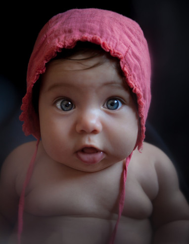- So much wonder and surprise in this little person’s face! It is hard taking our eyes off this little girl, her beautiful piercing blue eyes capture our attention. The chosen aperture make us focus on her face.