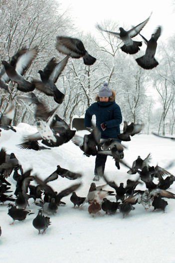 - The motion of the pigeons on this cold winter day is amazing. The angle in which the photographer chose to capture this scene makes this photo dramatic and brings the viewer right in the middle of it all. Great composition and well done for being ready for this exposure in the right moment.