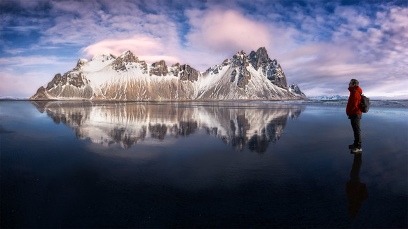 - Living a dream in Stokksnes Stokksnes (Iceland) - Canon 80D + Canon 16-35LII + Pano made from 7 shots at 17mm, ISO 100, f/8 and 1/100sec The reflection is real and due to the thin layer of water that the tide leaves on the black sand. It was one of the most beautiful locations in Iceland for me. Thank you for your votes!!!