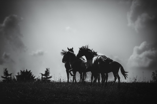 - There is some great action captured in this photo, and even though the horses are almost silhouetted, there is clear language going on between them. Nicely done. ~ illona