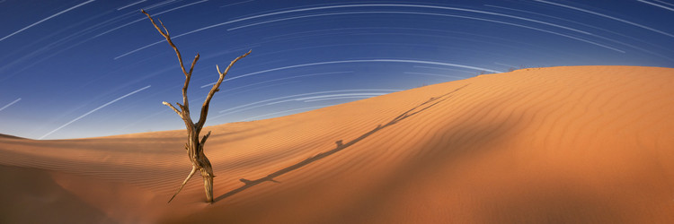 - I wanted to capture this dynamic landscape in another way, again allowing the viewer to experience in a single image, that incorporates and reveals this sweeping period of time that otherwise the eye can not directly proof. “Odyssey†is the name I gave this image as I thought about the journey of light and time around these quiet West Texas dunes. At night, I setup my camera to take a series of many pictures (after the moon set) to capture the southern star trails over several hours. Early in the morning, just as the sun was breaking the horizon, I exposed the last frame showing the long early shadows. To arrive at the final image, I had to fuse more than eighty exposures into one. Thanks to the cooperation of no clouds, low or mild wind, mostly no moon, and extra batteries, “Odyssey†was born.