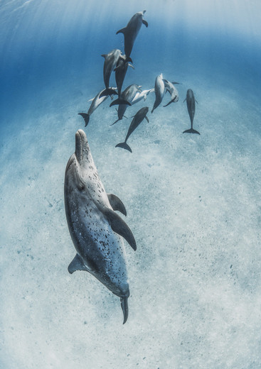 - Lovely swirling composition of this dolphin pod in a pastel sea where space is so important to the final image, well done.