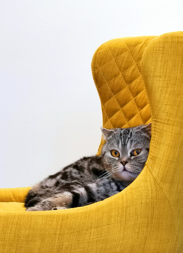 - What a fabulously simple yet rich image... The cat's golden eyes, echoing this chair's fabric, draw us in to his almost disdainful stare. Nicely done! ~ illona