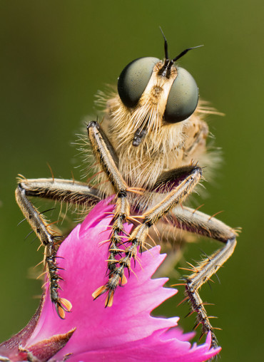 - I am honored to have my photo ranked among the best photos. Thank you very much. I'm Kis Szilveszter, amateur nature photographer from Romania. "Robber fly portrait" The robber fly seen in the photograph was sitting on a Carthusian Pink flower in the early morning hours. At this time many other insects wait in the safety of plants for the proper setting before starting off. Taking advantage of the peaceful moment, l established the desired depth of field with the help of focus-stacking, highlighting thereby the robber fly’s characteristic ambush behavior. It usually lands on an object or plant from where it can see the airspace of the area. At such times it observes the potential prey, which it catches in flight. I took the photo with a reverse lens. I fabricated a home-made flash diffuser for the internal flash, and used the tooth of a comb to manually control the aperture. The photo was taken with camera hand held NIKON D5300 - Nikkor 18-55mm | 1/200 | ISO: 640