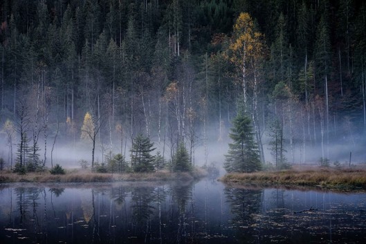 - Many thanks for judging. I captured this little lake in the early hours at autumn in the North of the Black Forest Nationalpark in Germany. I arrived in the dark with strong fog nearly 6am and stayed there until noon. The lake ist called "Ellbach" lake. It is very small, boggy and in the middle is an island with birches, surrounded from firs trees. I visited many times this place to capture this mystic foggy mood with my Sony A7III, Sony FE 24-105 with Tripod. I photographed a whole series for hours.