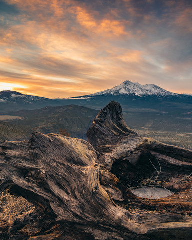 - "Sunrise Between Storms" Winter in California is wet season. This day was no exception. After a cold, rainy night, we hoped to catch a sunrise before the forecast rains for the day. From Black Butte, we drove to a Herd Peak fire trail just prior to first light. As sunrise occurred, it was a mixture of intense sunlight, breaking through the holes in the clouds, and gusty winds separating the clouds above from the fog burning off around the base of Mt. Shasta. An hour later, the mountain was completely shrouded in thick clouds and heavy rain fell throughout the day. For a few brief moments, the sun lit the clouds above Shasta on fire, creating colors befitting a volcano of this mountain's stature. Sometimes you just have to be thankful for the moments you get and move on to the next opportunity. EOS 5D Mk III : EF24-105mm f4L IS USM : 28mm : 1 second : f16 : iso 125 : Cokin EVO filter holder : LEE .9 ND soft grad filter : 3-Legged Thing 'Albert'