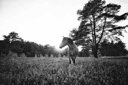 - What a perfectly captured and framed image, with the horse's muzzle centered in the flare of the sun and the large tree seeming to bracket him in this landscape. Absolutely wonderfully captured. I imagine it looks equally striking in color. Well done! ~ illona