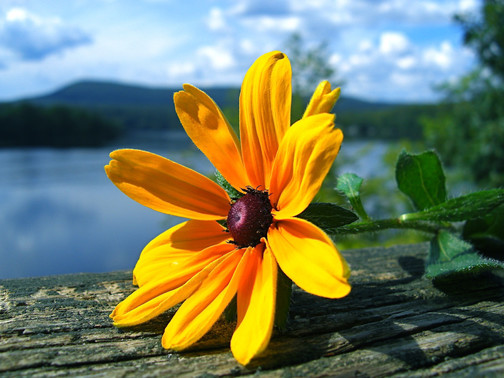- We wonder if this little flower was placed on the rocks, or if it possibly could grow there naturally? Either way and regardless, this is a great photo with good contrast and a bit of mystery.