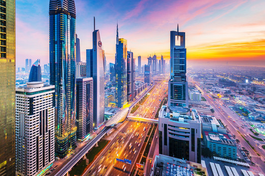 - High Rises on Sheikh Zayed Road at twilight, Downtown Dubai, Emirates, UAE Nikon D800E, Graduated ND Filter, Tripod, Remote control