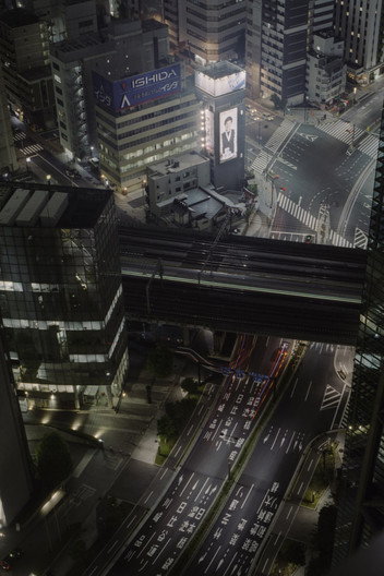 - Great city center atmosphere here with surprisingly little traffic. The plunging view highlights the road and its painted writing, the result is unusual.