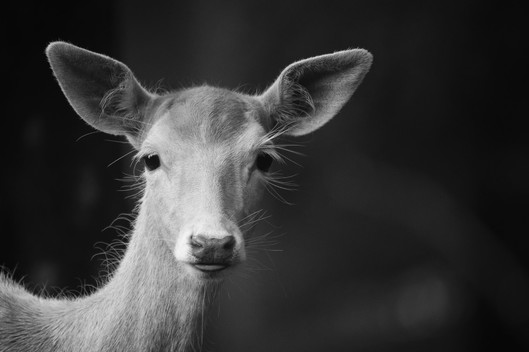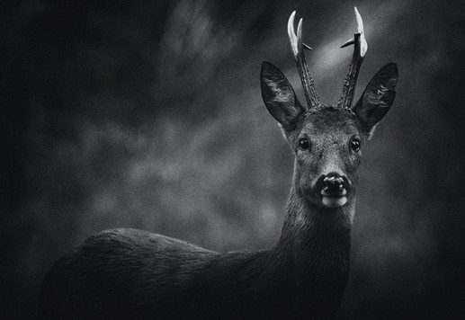- Wonderfully dark b+w portrait of this roe deer buck with a striking glint in his eyes.