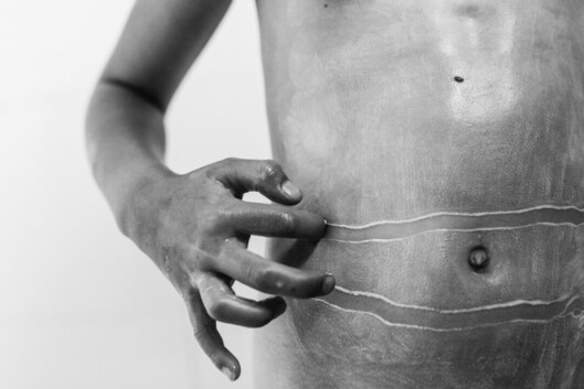 - Black and white is a great choice for this artistic photograph. The crop is perfect, and how the two fingers create a track over a body is unusual and is superb?