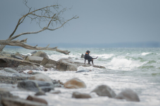 - The ruggedness of this landscape and the almost palpable storm, winds and waves offer a stunning backdrop for this hound dog. This is a great capture.