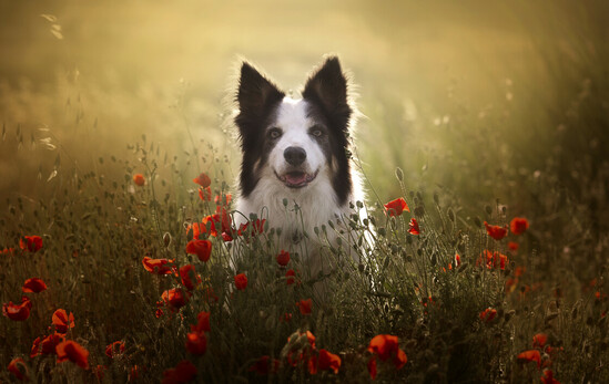 - This is a beautifully back-lit image ... the incredible display of poppies in the foreground and the soft circling this collie, work to present us with a highly memorable image. Nicely done.