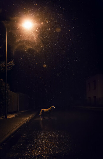 - I (Elfmet) am particularly pleased that this picture of my Cosmo even took first place in my favorite category of dog photography, many thanks! Yes, the available light at night glittered so beautifully through the sleet and damp ground and my dog ​​was standing right under one of the cones of light from the streetlights... The picture was taken in Weimar (Germany) with a Canon 5D MarkIII and 35 Sigma-Art-Lens, post-processing with LR and PS.