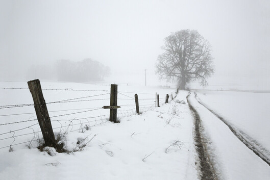 - Beautifully composed it this colour photo, which, because of snow and winter, looks almost like a black and white image. All those lines going to the distanced tree give it a great appearance.