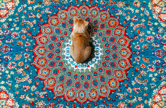 - This is such a fun and lively image. The stunning colors of the rug's pattern encircling this resting tabby and the perfect centeredness of the image, work perfectly. Nicely done!