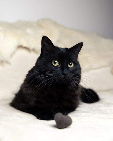 - What a fun and lovely image. There is so much to love about this simply composed image ... but it is its simplicity that allow the viewer to really focus on this beautiful cat's stunning eyes and those amazingly long whiskers as it sits with its toy. Nicely done!
