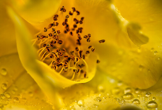 - A truly superb close-up, with the focus in the center of the flower. Looking a little closer, we spot water drops around the inside of the paddles. This image is lovely composed and executed.
