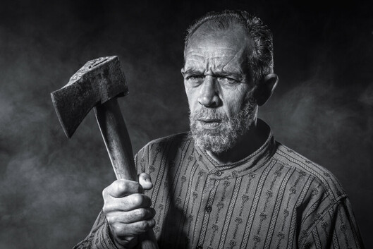 - A beautiful portrait of a man with an axe in his hand and a wonderful background that gives the picture another dimension.