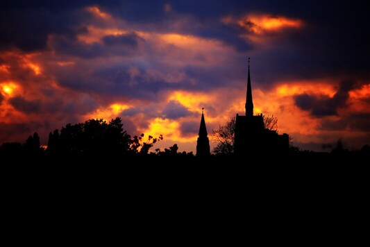 - Thanks for your votes! This is a silhouette of trees and church buildings in Hannover, Germany at sunset. I used my Canon EOS 6D and a Tamron telephoto lens at 259 mm and f/5.6. Post processing was done in Snapseed to create the high contrast and black silhouette.