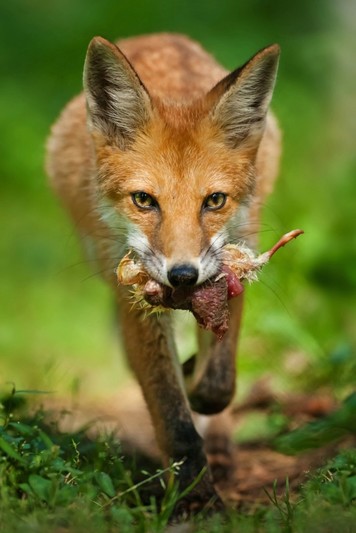 Once again our foxy friend makes a remarkable capture, i love how the fox is coming straight at you. You have managed the focus almost perfectly, it is slightly behind fox’s eyes. It looks like he is carrying a chick and a piece of meat which suggests he hasn’t caught a prey but has been fed? which is partly why this stunning photo is not higher up the rankings.