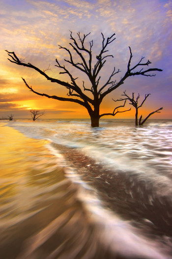 Striking! I wonder though why you have gone so far with your “developing†of this most unusual scene. Trees swamped in the water, silhouetted against a dramatic sky with powerful lead lines from the waves which you have captured so well. The scene is naturally extraordinary and a more natural post processing would surely have made a better photograph. Contrast is too high, the whites of the water have become unreal. Natural beauty goes far beyond digital beauty, sadly you have over boosted things here.