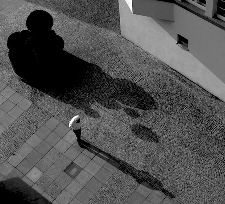 - Time stands still with the shadows, very cold shadow perhaps in the morning. The shadow does it's own thing, the different textures of the sidewalk. It's very balanced and beautiful. It's like there are several personalities in the photo, playing with each other and accompanying each other. It simply works because of all the elements, and wouldn't if they didn't meet in this unique moment.