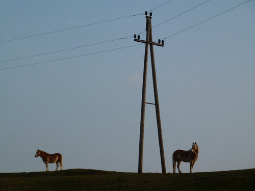 - We like the composition and how the light hits the horses, the empty sky and the off center. The horizontal and vertical ... it works!